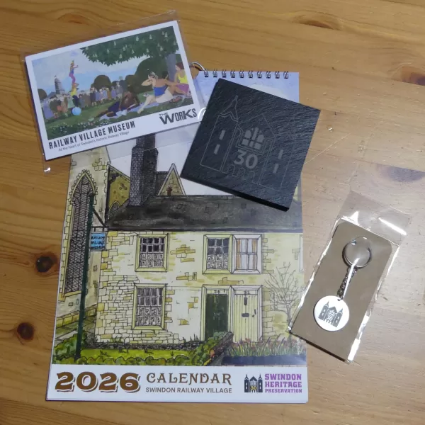 The Presentation Gift Pack includes a calendar, postcard set, coaster, and key chain. A meaningful heritage-themed bundle that celebrates Swindon’s history and creativity.
